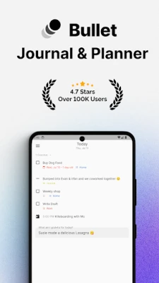 Bullet er en journal- og planlegger-app basert på Bullet Journal-metoden. Hold orden på hverdagen med daglig målbehandling, oppgavesporing og arrangementsplanlegging. Forenkle dine daglige oppgaver og mål med Bullet for enkel journalføring, planlegging og sporing.