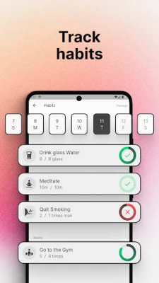 Drømmer du om å mestre kunsten med bullet journaling, men foretrekker den digitale bekvemmeligheten fremfor blanke sider? Bullet forvandler smarttelefonen din til en sømløs digital journal, en alt-i-ett-løsning for å planlegge, spore og organisere hvert aspekt av ditt liv. Se for deg en personlig dagbok, en detaljert gjøremålsplanlegger – komplett med oppgaver, mål og hendelser – og en egenomsorgs-tracker, alt forenklet for daglig, uanstrengt bruk. Med Bullet er det enkelt å fange tanker, følelser eller planer i løpet av sekunder, og du kan begynne umiddelbart uten behov for en konto.