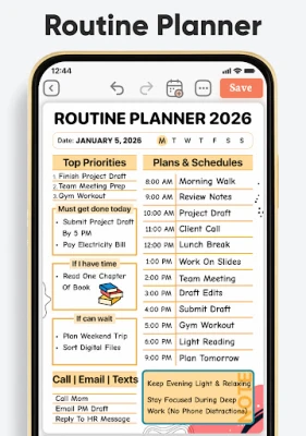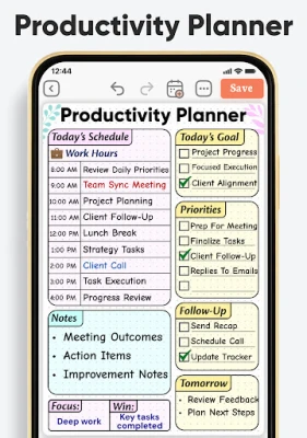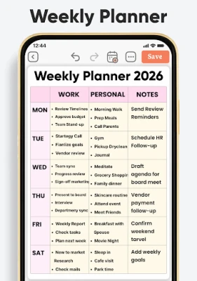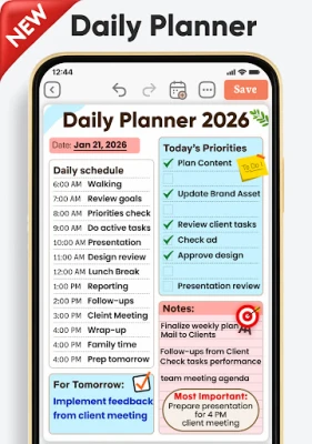 I en stadig mer krevende hverdag er det å bevare oversikten og finne roen en verdifull kunst. Daily Planner & Weekly Planner er et intuitivt digitalt verktøy fra Planwiz, utviklet for å forenkle livet ditt og gi deg en sømløs plattform for både effektiv planlegging og meningsfull selvrefleksjon. Denne appen hjelper deg med å strukturere oppgaver, administrere avtaler og nå dine mål, alt samlet på ett sted. Opplev hvordan klarhet og kontroll kan transformere din daglige rutine og frigjøre tid til det som virkelig betyr noe for deg.