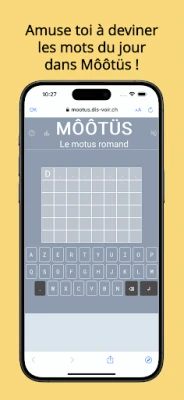 Fortsett den språklige oppdagelsen med «Devine voir», en morsom vri på det klassiske ordspillet MOTUS, men med sveitsiske ord! Test din kunnskap om vokabularet i Romandie og utfordre deg selv til å gjette dagens skjulte ord med et begrenset antall forsøk. Det er en fantastisk måte å utvide ditt ordforråd på og oppdage nye, lokale begreper. Til slutt gir «Participe voir» deg sjansen til å ta del i større, fransktalende undersøkelser. Del dine egne språklige erfaringer og bli en viktig brikke i omfattende forskning som kartlegger det franske språkets mangfold. Vi byr på nye utfordringer og oppdateringer annenhver uke, slik at det alltid er noe nytt å utforske. Ditt engasjement er uvurderlig og utgjør et betydelig bidrag til forskning og dokumentasjon av sveitsisk fransk.