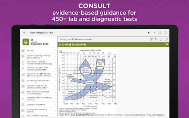 Forbedret med funksjoner designet for effektivitet og presisjon, inneholder "Guide to Diagnostic Tests" direkte koblinger til PubMed-sitater (PMID) for dypere utforskning av medisinsk litteratur. Appen benytter også et omfattende utvalg av algoritmer, tabeller og diagrammer for å presentere kompleks informasjon på en lettfattelig måte. Med en universell indeks-søkefunksjon finner du raskt det du leter etter, og du kan enkelt bokmerke viktige oppføringer med 'Favoritter'. Denne robuste medisinske ressursen, utgitt av anerkjente McGraw Hill og drevet av Unbound Medicine, er skapt for å støtte deg i din daglige kliniske praksis.