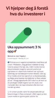 Med **Kron** er du alltid ett skritt foran. Motta relevante oppdateringer direkte i appen som forklarer hvordan verdens hendelser påvirker din sparing, presentert på en lettfattelig måte. Du får innsikt som hjelper deg å forstå markedet, uten komplisert sjargong. Og skulle du ha spørsmål eller trenge veiledning, står våre erfarne rådgivere klare til å hjelpe deg via chat – ekte mennesker, ingen tidkrevende robotmenyer som står i veien for god service.