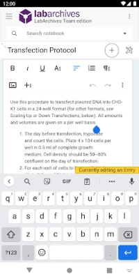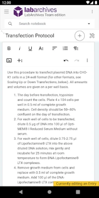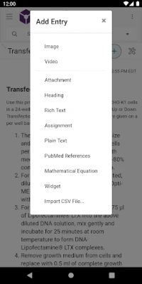 Med LabArchives ELN-mobilappen kan du utnytte de innebygde funksjonene i din Android-enhet for en mer dynamisk dataregistrering. Diktér tekstoppføringer for rask notasjon, og berik dine eksperimenter med bilder, video- og lydfiler direkte fra feltet eller laboratoriet. Appen integrerer alle de kraftige verktøyene LabArchives ELN er kjent for, slik at du kan fange konteksten og detaljene i forskningen din med uovertruffen letthet og presisjon, uansett hvor inspirasjonen måtte slå til.