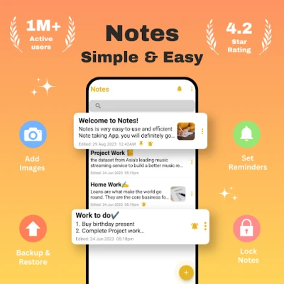 Notes er en svært brukervennlig notatapp inspirert av Apples design. Skriv raskt ned tanker, e-poster, handlelister eller gjøremål, og sett praktiske påminnelser. Sikkerhetskopier og gjenopprett enkelt notatene dine med Google Drive på tvers av enheter.