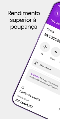 Nubank åpner en verden av muligheter. Start din reise med en gratis NuConta, din nøkkel til en smartere digital økonomi. Opplev friheten med et internasjonalt kredittkort uten årsavgift, akseptert over hele verden. Fleksibiliteten er din; se kredittgrensen din øke umiddelbart når du betaler regningen, eller la sparepengene dine bidra til å utvide den. Pengene dine i NuConta gir en avkastning som overgår tradisjonelle sparekontoer, og med våre innovative "Caixinhas" kan du enkelt organisere sparingen din for ulike mål, komplett med attraktive renteinntekter.