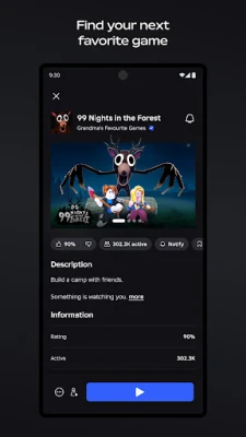 Roblox lar deg spille, skape og utforske millioner av opplevelser. Oppdag en endeløs strøm av eventyr, rollespill, simulatorer og kreative verdener. Engasjer deg med et globalt fellesskap av skapere og finn noe for enhver smak, enten du vil utforske, konkurrere eller bare henge med venner.
